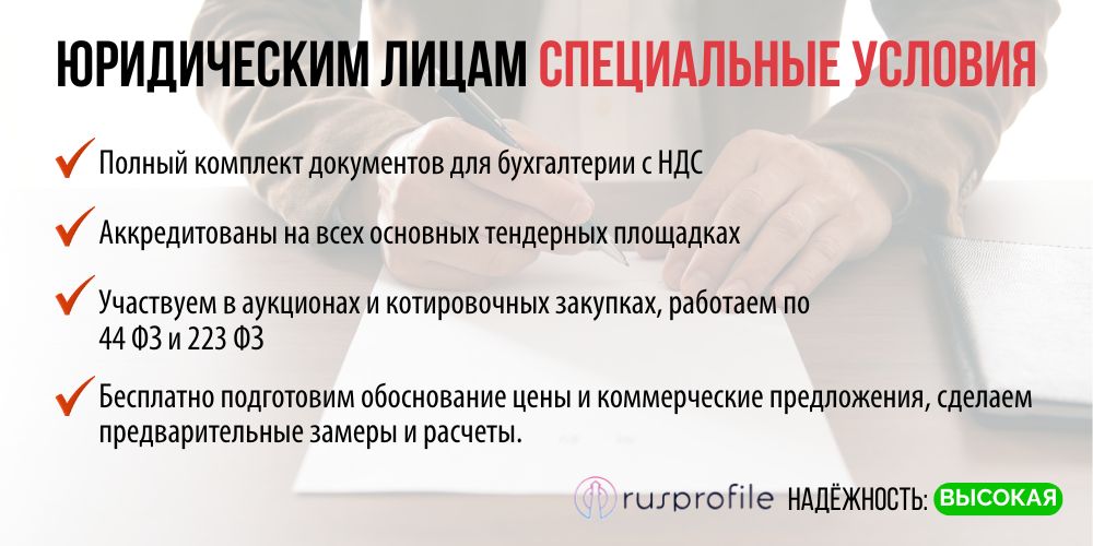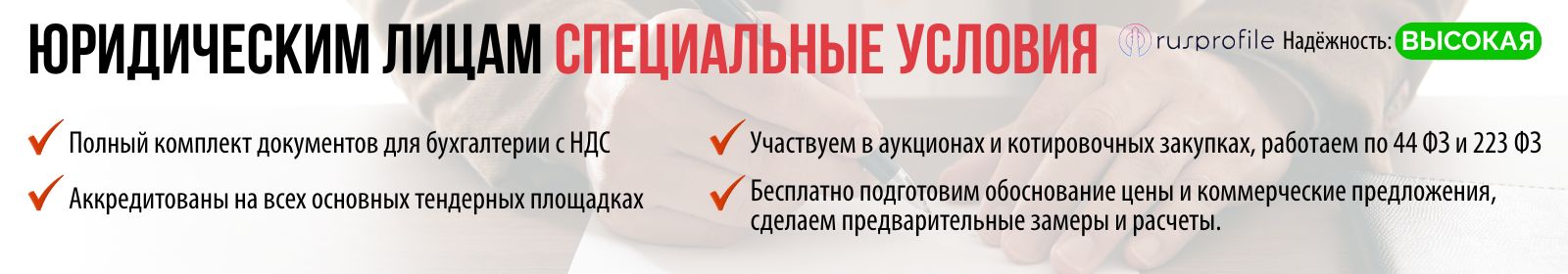 Наша компания включена в "Реестр проверенных поставщиков". Это означает, что мы соблюдаем требования, установленные Федеральным законом № 44-ФЗ и требования, установленные Федеральным законом от 18.07.2011 № 223-ФЗ, касающиеся отсутствия информации о поставщике в Реестре недобросовестных поставщиков, размещенном на официальном сайте Госзакупок (www.zakupki.gov.ru). Тем самым мы подтвердили, что соблюдаем законодательство РФ в области поставок продукции (работ, услуг), способность осуществлять поставки продукции (работ, услуг) требуемого качества в установленные сроки.
